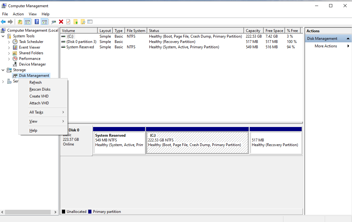 a šta ti piše u disk managment?