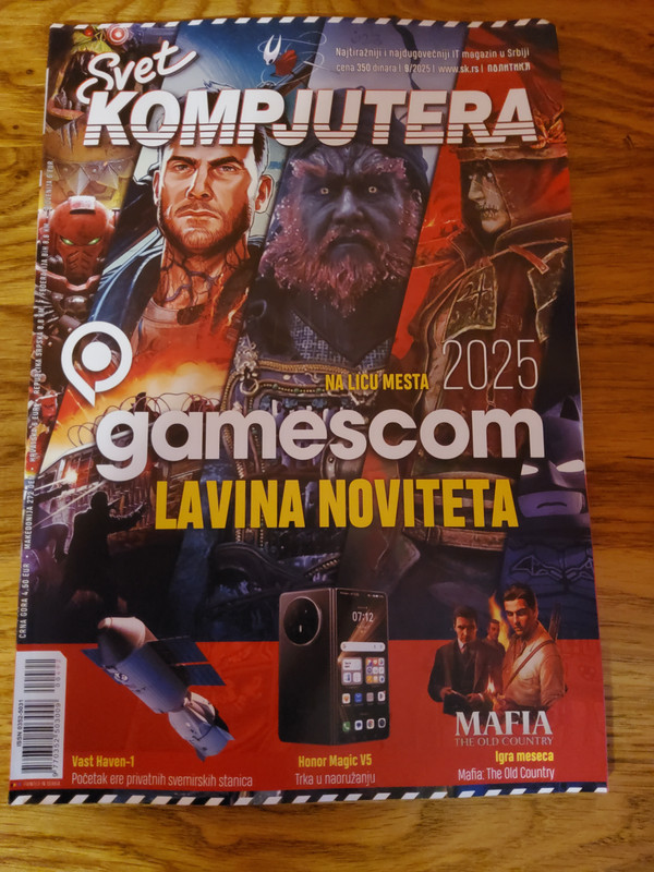 Naslovna strana izgleda ovako: Izdvajamo iz sadržaja: AKTUELNOSTI - Gamescom 2025 Najveći svetski sajam igara konačno se vraća na stare staze obaranja rekorda... Gigabyte Aorus GeForce RTX 5060 Elite 8G RTX 5060 će možda postati popularan ako mu Nvidia spusti cenu za barem 100 evra, ali, za sada, nema indicija da će se to desiti... Lenovo Yoga 9i 2-in-1 Aura Edition Kako je ovo „2-u-1” laptop, sa tablet načinom rada, Lenovo posebno ističe da je namenjen kreativcima, sa naglaskom na AI... TIPS AND TRICKS - Dubinsko čišćenje Windowsa 10/11 Da bi funkcionisao onako kako su to njegovi tvorci zamislili, Windows je povremeno potrebno „servisirati”: obaviti deinstalaciju programa koje ne koristite, počistiti „đubre” sa diskova, ispeglati startup sekvencu, rešiti se malicioznog sadržaja i tako dalje... Honor Magic V5 Honor Magic V5 je za milimetar tanji od Folda7, ali samo model u Ivory White kolornoj šemi... INTERNET (.rs) • Nove eUsluge • Oporavak pravosudnog sistema • Završetak DAB+ testne mreže PRIMENA - Privatna svemirska stanica Haven‑1 Lansiranjem stanice Haven‑1 otpočinje nova, privatizovana era svemirskog istraživanja... TRŽIŠTE - Druga faza AI modela Iako bi se reklo da je prilično mlada, industrija veštačke inteligencije danas već stoji na tački preloma... PRVI UTISCI Titan Quest II Razvoj zvaničnog nastavka slavnog Titan Questa konačno je ušao u Early Access fazu... Mafia: The Old Country (Igra meseca) Kratka, solidna, kruta i zadovoljavajuća igra koja ispunjava osnovno što se očekuje... Donkey Kong Bananza Svetovi iz kojih se igra sastoji destruktabilni su do te mere da ih je moguće sravniti sa zemljom... Ninja Gaiden Ragebound Odličan naslov i pravi nastavak originalne trilogije... ![]() |